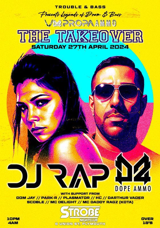 Over the years, Dom Jay has had the privilege of supporting an extensive line-up of world class artists and musical pioneers, including Utah Saints, Dream Frequency, Shades of Rhythm, Paul Oakenfold, Faithless, Phil Hartnoll (Orbital), Ellis Dee, Mr C (The Shamen), K-Klass, 808 State, Altern 8, Allister Whitehead, Andy Carroll, Lenny Fontana, Andy C, Goldie, Pendulum, Sy, Slipmatt, Billy Bunter, Vibes, Ragga Twins, Logistics, Friction, Modestep, Serum, Ed Solo, Miss Dynamite, Navigator, Remarc, MistaJam, Marvellous Cain, Loadstar, Dreadzone, Serial Killaz, Aquasky, Dub Pistols, Darren Styles, Hixxy, DJ Rap, DJ Hype, Roni Size, Chase & Status, Dillinja, Nero, Brookes Brothers, Scratch Perverts, Fabio, High Contrast, Aphrodite, Congo Natty, DJ Guv, Eksman, London Elektricity, Danny Byrd, SASASAS, Original Sin, Hype, Nicky Blackmarket, Bez (Happy Mondays), Wilkinson and many, many more.